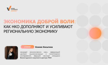 Заведующий Центром социокультурных и политических исследований, ведущий научный сотрудник ВолНЦ РАН кандидат экономических наук Ксения Евгеньевна Косыгина представила исследование «Экономика доброй воли: как некоммерческие организации дополняют и усиливают региональную экономику» в рамках сессии «Экономический портрет некоммерческих организаций». Ученый подчеркнула, что реальная жизнь НКО сосредоточена в регионах и муниципалитетах: «Это уровень, где сталкиваются проблемы и ресурсы, выстраиваются отношения с властью и обществом и где происходит основная работа по улучшению жизни людей».