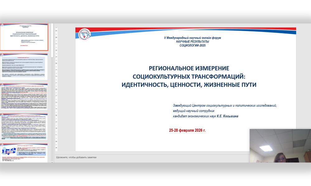 Сотрудники ВолНЦ РАН представили результаты исследований социокультурных процессов на международном онлайн-форуме «Научные результаты социологии–2025»