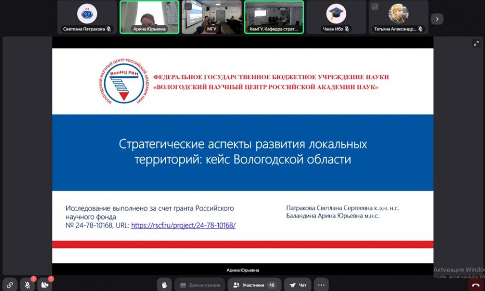 Научный сотрудник Центра исследования пространственного развития социально-экономических систем, к.э.н. С.С. Патракова и младший научный сотрудник Центра структурных исследований и прогнозирования территориального развития А.Ю. Баландина выступили с докладом «Стратегические аспекты развития локальных территорий: кейс Вологодской области», подготовленным в рамках гранта РНФ № 24-78-10168 «Формирование экосистем устойчивого развития локальных территорий как ответ на глобальные и региональные вызовы современности». Их работа была посвящена выявлению и обоснованию уникальных стратегических приоритетов развития периферийных муниципальных образований, базирующихся на их конкурентных преимуществах.