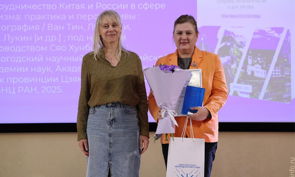 По итогам конкурса «Вологодская книга года – 2025» лучшим научным изданием признана монография, созданная коллективом исследователей ВолНЦ РАН и Академии общественных наук Цзянси (Сотрудничество Китая и России в сфере туризма: практика и перспективы : монография / [Ван Тин, Лу Сяоци, Е. В. Лукин, Е. Г. Леонидова, Чэнь Цзинь, Кун Вэнь ; под науч. рук. Сяо Хунбо, Ли Сяоюй, В. А. Ильина, А. А. Шабуновой]. – Вологда : ВолНЦ РАН, 2025). Книга уникальна тем, что сочетает в себе российский и китайский исследовательские подходы, создавая целостную картину кооперации двух стран в сфере туризма. Основная особенность монографии – междисциплинарный подход, объединяющий экономику туризма, экономическую географию, пространственную экономику, промышленную экономику, международную политологию, социологию и историю культуры.